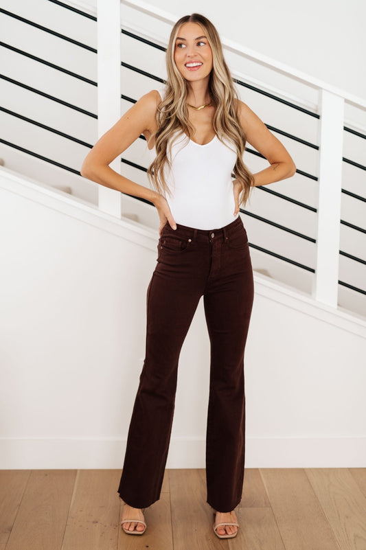 Sienna High Rise Control Top Flare Jeans in Espresso